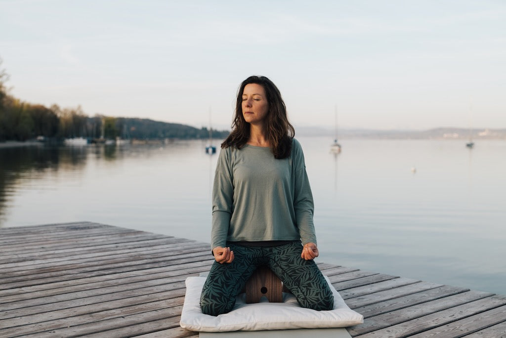 Der Hocker unterstützt deine natürliche Sitzhaltung, entlastet Rücken, Knie und Fußgelenke – und hilft dir, länger und entspannter zu meditieren.
